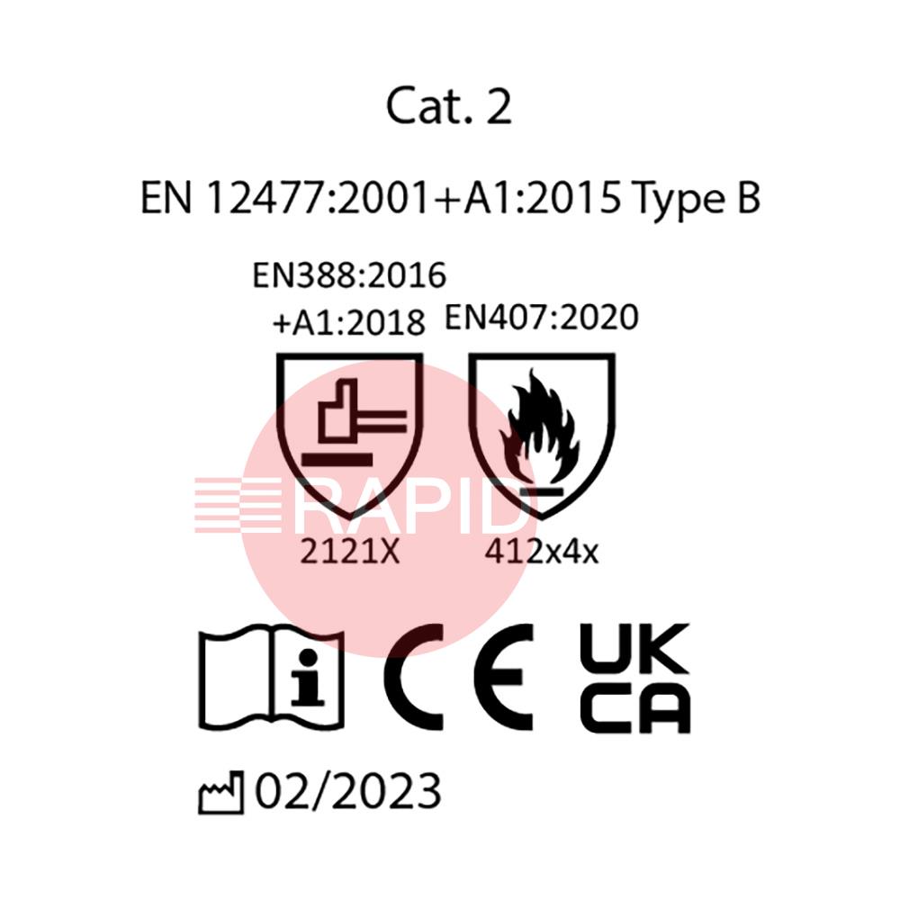 The ideal mix is partially insulated gloves that offer good dexterity and heat protection. Palm, index finger and thumb in goat grain leather 0.8-0.9mm for dexterity and durability. Back of hand and cuff in cow split leather 1.0-1.2mm.