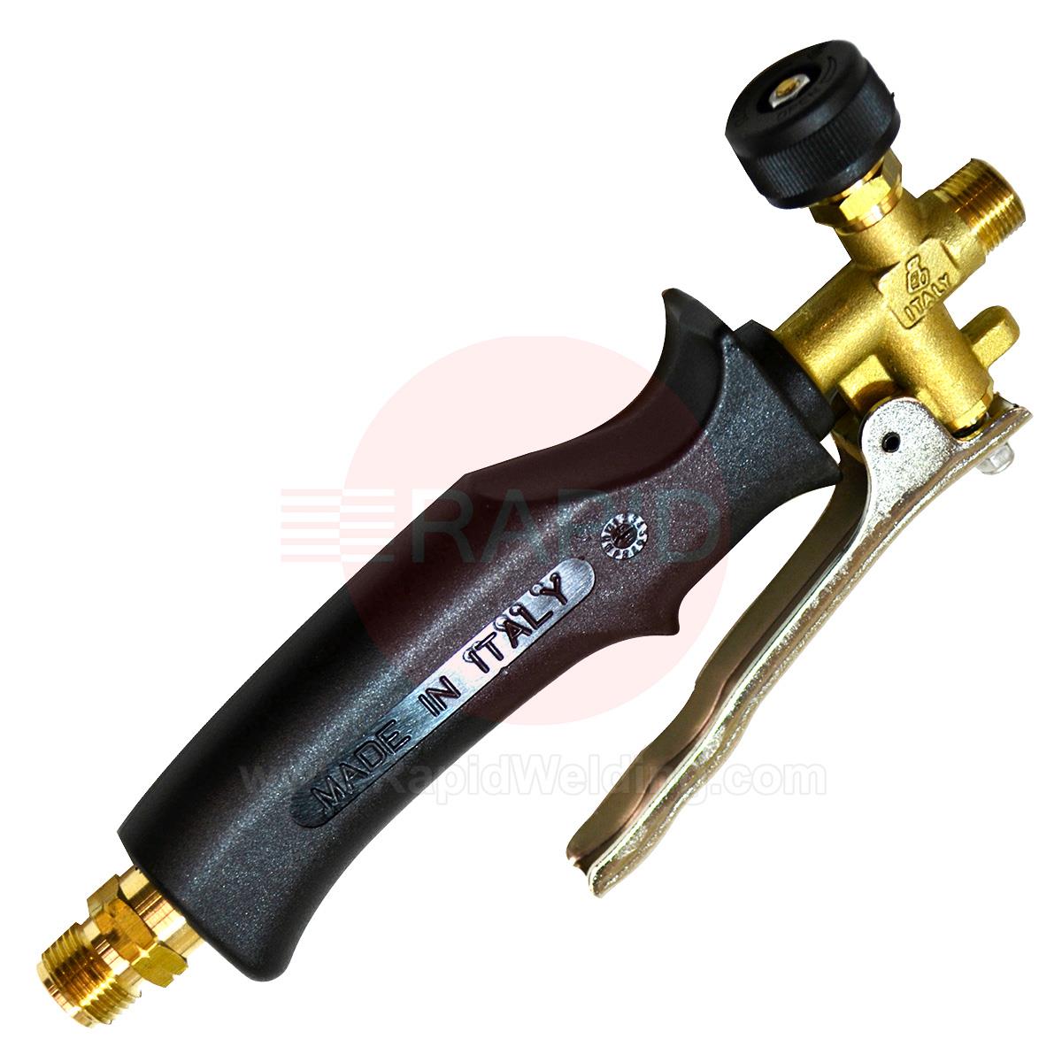 The BG111 heating torch has a 60MM burner and measures 560mm in length. It incorporates a valve for fine adjustment of fuel gas flow, and a lever to introduce a jet of heat as required. The torch is built for connection to a propane gas supply via its 3/8" BSP Left-Hand threaded connection, located at the base of the handle