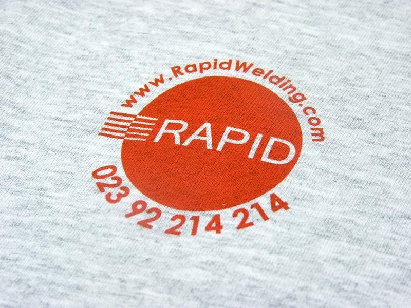 Mens Regular Fit - Grey Fruit of the Loom T-Shirt with Rapid Logo. Model pictured is wearing size: Medium