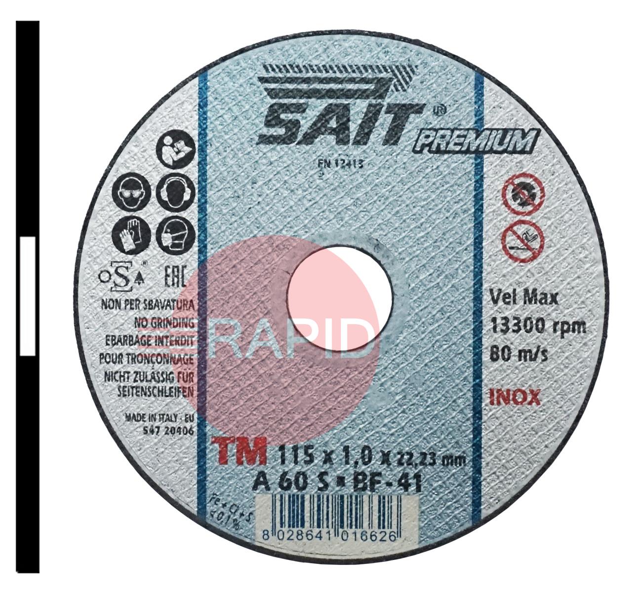 SAIT Premium 115mm (4.5") Slitting Cutting Disc 1.0mm Thick - Grade TM A 60 S