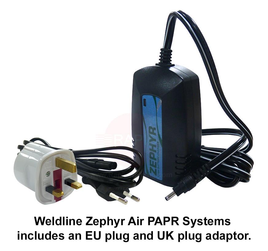 The Zephyr Flip-Air is designed to protect welders most effectively with efficiency and comfort. It features a flip-up helmet with a shade 4/5-13 wide view auto-darkening filter. Paired to a battery powered belt mounted airflow system, providing filtered air. The belt itself includes a cushion to ensure a high comfort level and includes a shoulder strap. The lithium-ion battery is designed to last 8 hours before recharging. A 14-hour heavy-duty battery is also available as an option.