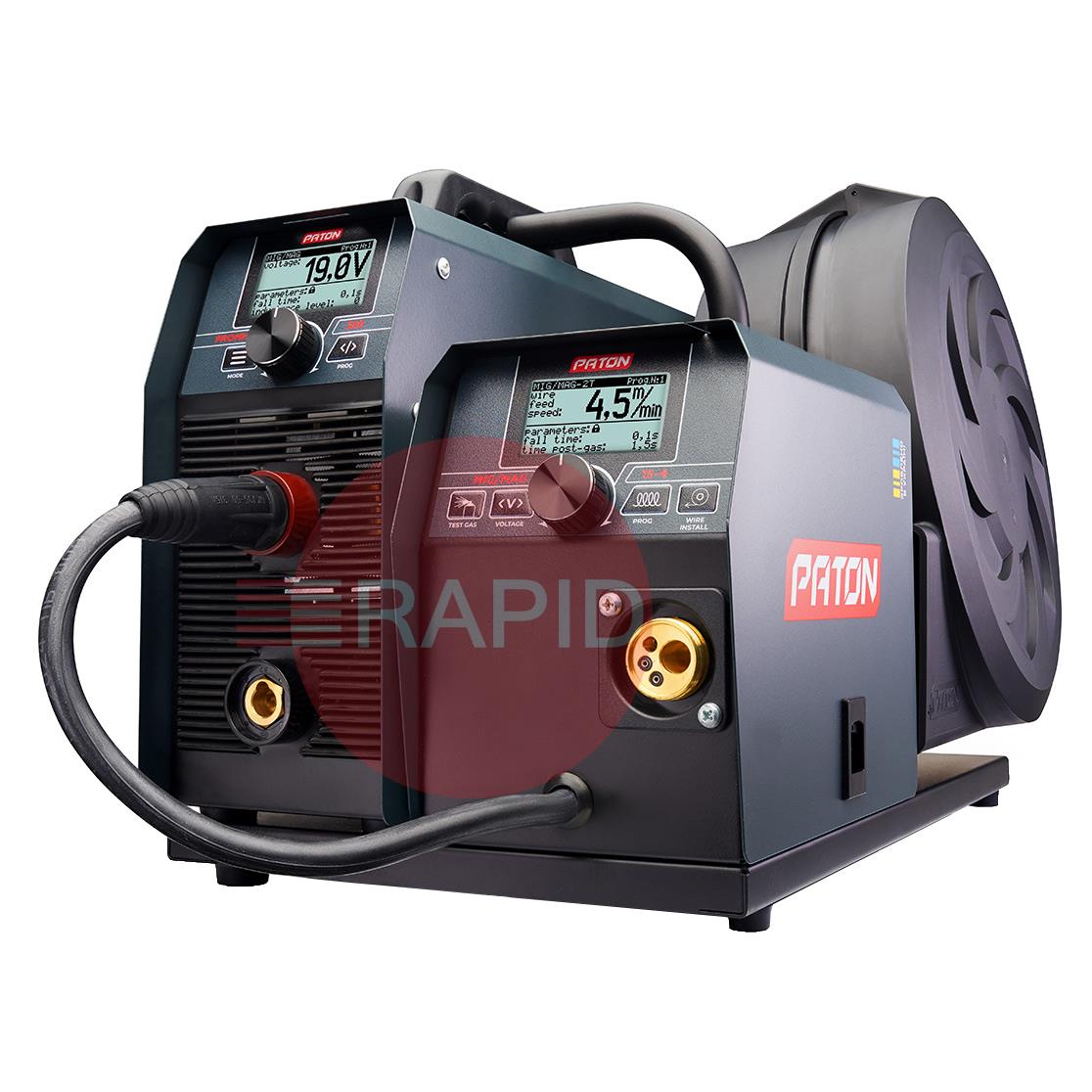 Digital semiautomatic inverter PATON ProMIG-350-15-4 W – is a device for professional use, designed for semi-automatic welding (MIG/MAG), manual arc welding (MMA), TIG DC, in shielding gases and mixtures thereof. In ProMIG-350-15-4 W, the machine offers an all-digital control system, thereby ensuring its versatility and the ability to fine-tune welding conditions. Expectancy increased load on the rated current to 350A, allows any electrode diameter from 1.6 mm to 6 mm, and conducts semi-solid welding wire with a diameter of 0.6 to 1.4 mm.