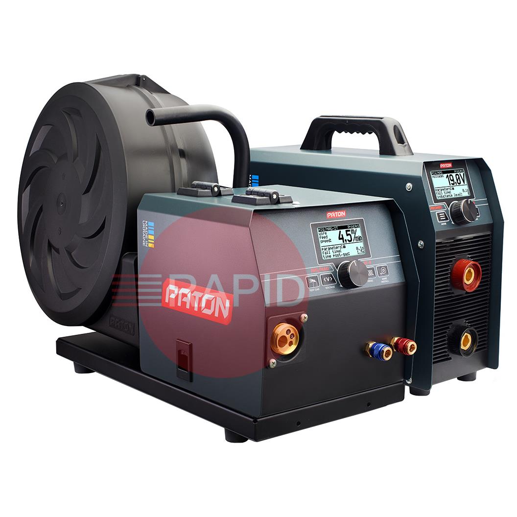 Digital semiautomatic inverter PATON ProMIG-350-15-4 W – is a device for professional use, designed for semi-automatic welding (MIG/MAG), manual arc welding (MMA), TIG DC, in shielding gases and mixtures thereof. In ProMIG-350-15-4 W, the machine features an all-digital control system, ensuring versatility and the ability to fine-tune welding conditions. Expectancy increased load on the rated current to 350A, allows any electrode diameter from 1.6 mm to 6 mm, and conducts semi-solid welding wire with a diameter of 0.6 to 1.4 mm.