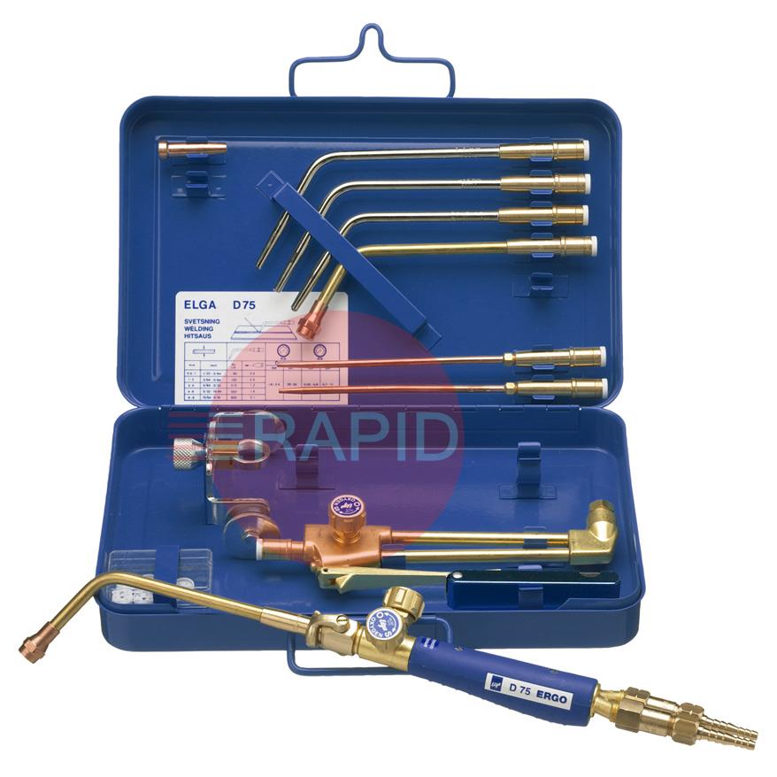 The D75 ERGO is very well suited to jobs in car workshops, farming, heating and plumbing etc. Welding up to 10 mm and cutting up to 100 mm. The complete system consist of components for welding, cutting, heating and soldering.