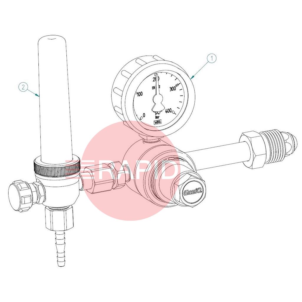 GasiQ TIGEX I Argon/Mix Regulator. 34Lpm. W24.52" Ext. Cylinder Connection. G3/8" Outlets.