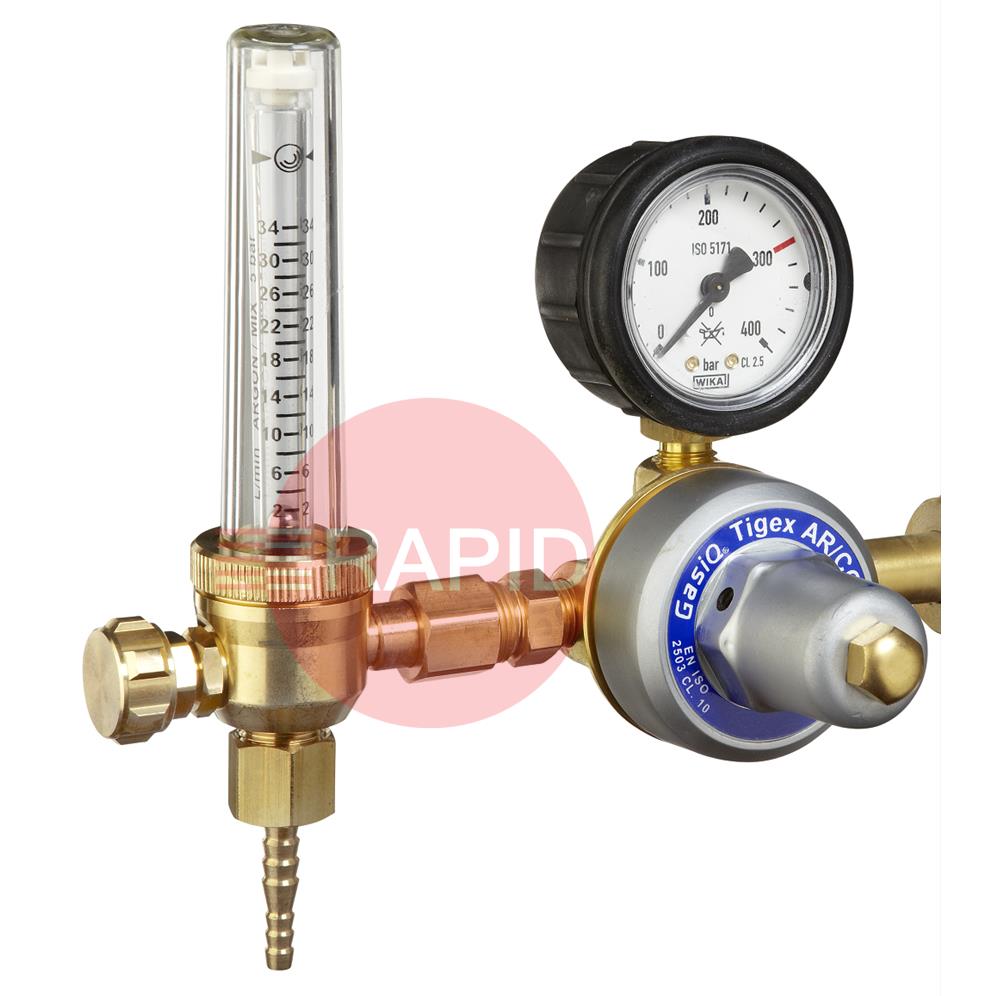 GasiQ TIGEX I Argon/Mix Regulator. 34Lpm. W24.32 x 1/14" Cylinder Connection. G3/8" Outlets.