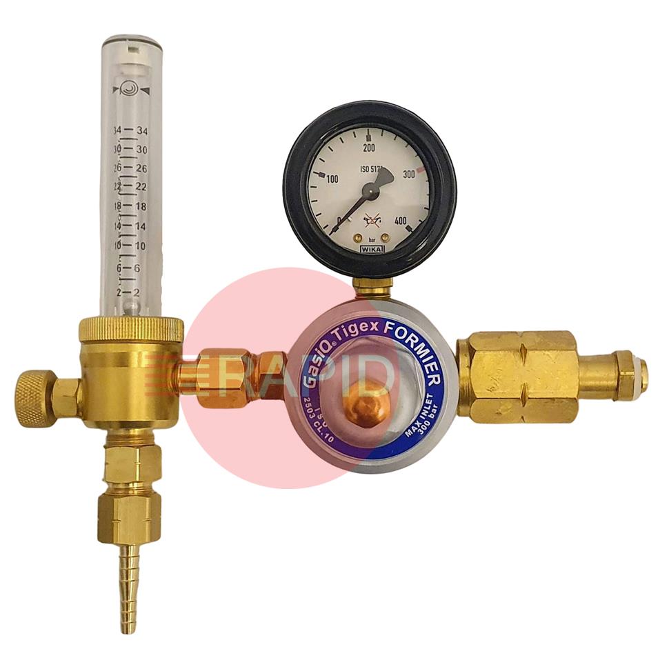 GasiQ TIGEX I Formier/Backing Gas Cover Regulator. 34Lpm. W21.8 x 1/14"LH Cylinder Connection. G3/8"LH Outlets.