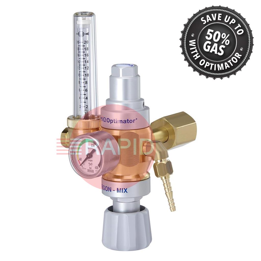 GasiQ Optimator I Argon/H2 Mix Gas Saver Regulator. 20Lpm. W21.8 x 1/14"L Cylinder Connection. G3/8"L Outlets.