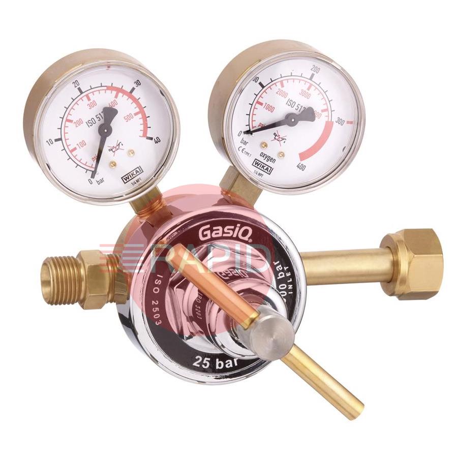 GasiQ High-Capacity H25 Oxygen Regulator. 25 Bar. W21.8 x 1/14" Cylinder Connection. G1/2" Outlets.