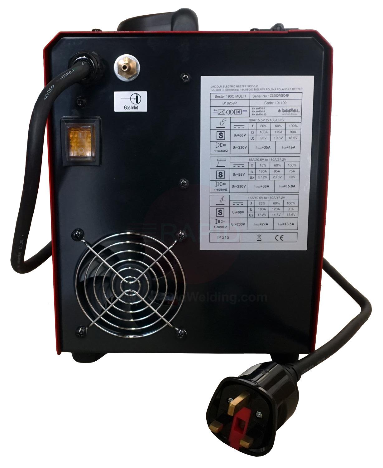 • B18259-1MP  Lincoln Bester 190C Multi Process Inverter Welder Package, with MIG/TIG Torches & MMA Leads - 240v