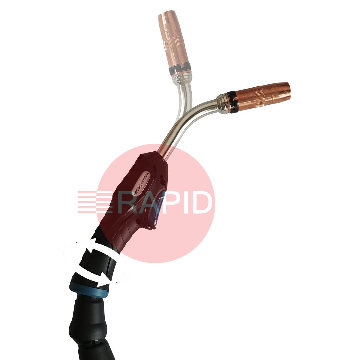 • ERGOPLUS500R  Trafimet ERGOPLUS 500R 50° Neck Water Cooled MIG Torch Rotating Handle w/ Euro Connection, 500A CO2, 450A Mixed Gas