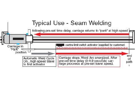 The KAT® Carriage Auto-Weld enables a wide variety of automated welding cycles that can be repeatedly performed along any plane. The advanced Auto-Weld control monitors, via distance travelled and responds to limit switches mounted on the KAT® which in turn respond to adjustable activators mounted at appropriate positions on the KAT® Track. Travel direction/speed and length of travel path are synchronised with precise weld start and weld stop settings. By combining different control settings and limit switch activator positions, a wide variety of welding cycles can be repeatedly performed. The KAT® Auto-Weld Combination is ideal for stitch welding and seam welding applications where repeatability and accuracy are desired. The reliability and precision of this automated welding system reduces cost, adds efficiency and improves quality.
