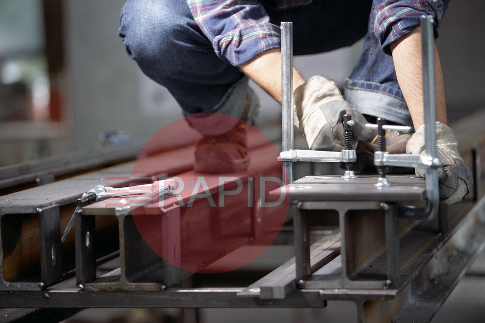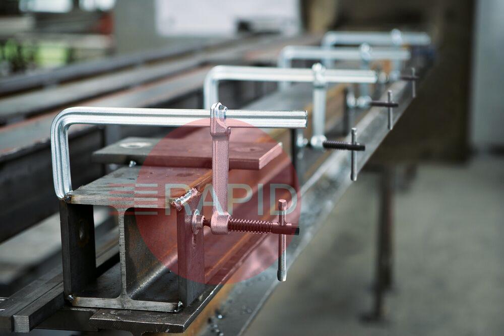 • Fixed jaw and sliding arm are constructed of tempered steel for resilient clamping