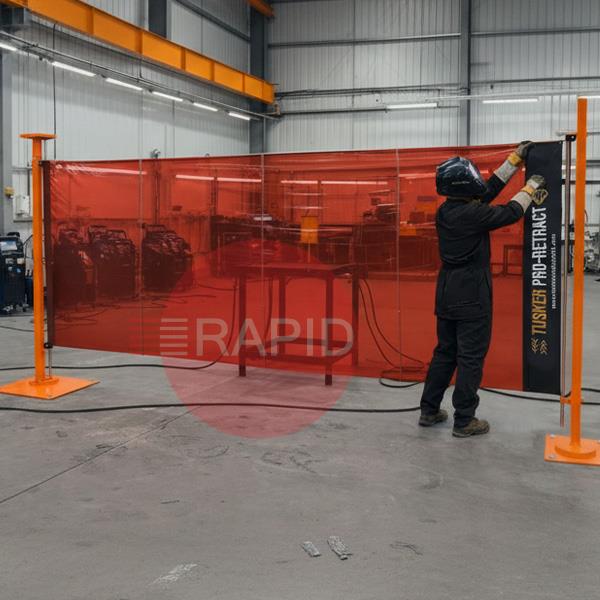 Designed in the UK, the Tusker Pro-Retract Retractable Welding Screen is manufactured for use in workshops, fabrication facilities, shipyards and training environments where welding safety, visibility and flexibility are essential. The welding screen is engineered for the most demanding of industrial environments. The retractable mechanism allows for rapid deployment and stowing, and the heavy-duty steel frame and posts guarantee long lasting reliability, even after continued use.