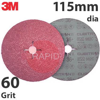 3M Cubitron II 982C Fibre Disc, 115mm (4.5") Diameter, 60 Grit (Pack of 25)