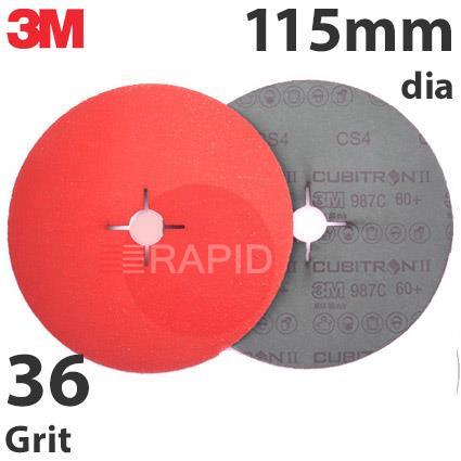 3M Cubitron II 987C Fibre Disc (Stainless Steel), 115mm (4.5") Diameter, 36 Grit (Pack of 25)