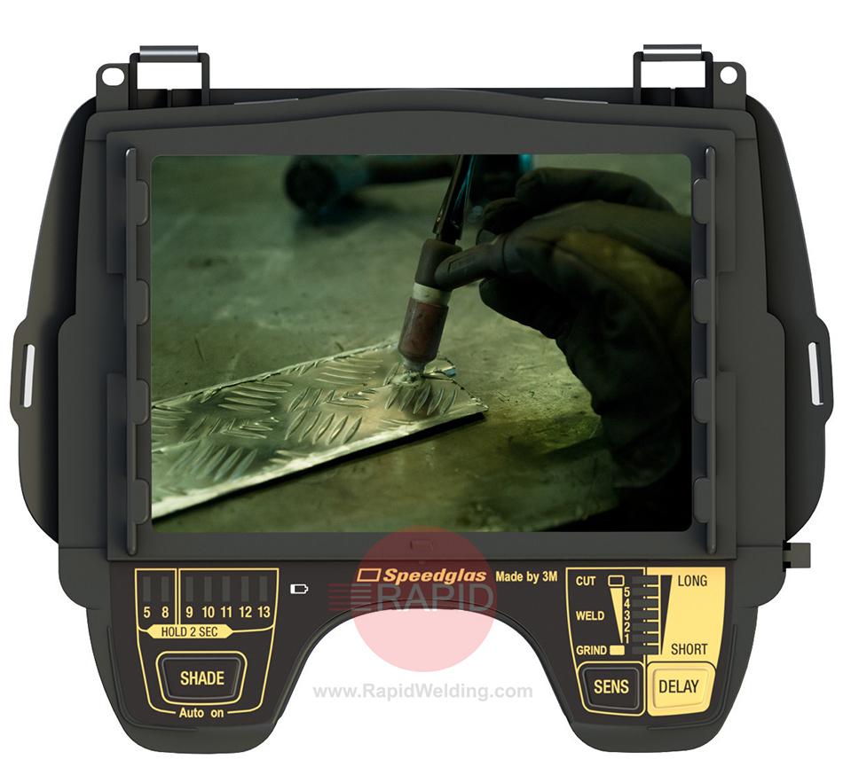 The Speedglas 9100 MP (Multi-Protection) Welding & Safety Helmet from 3M has been designed to offer five levels of protection: Eye, Face, Head, Respiratory and Hearing (optional accessory). The 9100MP flips up to reveal a large, curved, protected visor for enhanced visibility. This protective visor meets EN 166B, making it highly suitable for grinding applications. The integrated top shell is made from heat-resistant polycarbonate and meets the latest EN 379 standard for industrial safety helmets. An optional high-visibility aluminium fabric reflects hot sunlight and welding heat. 3M Peltor hearing protection can also be added as an option. The 9100 XXi auto darkening lens provides improved optics, which allows you to more readily recognise colours.