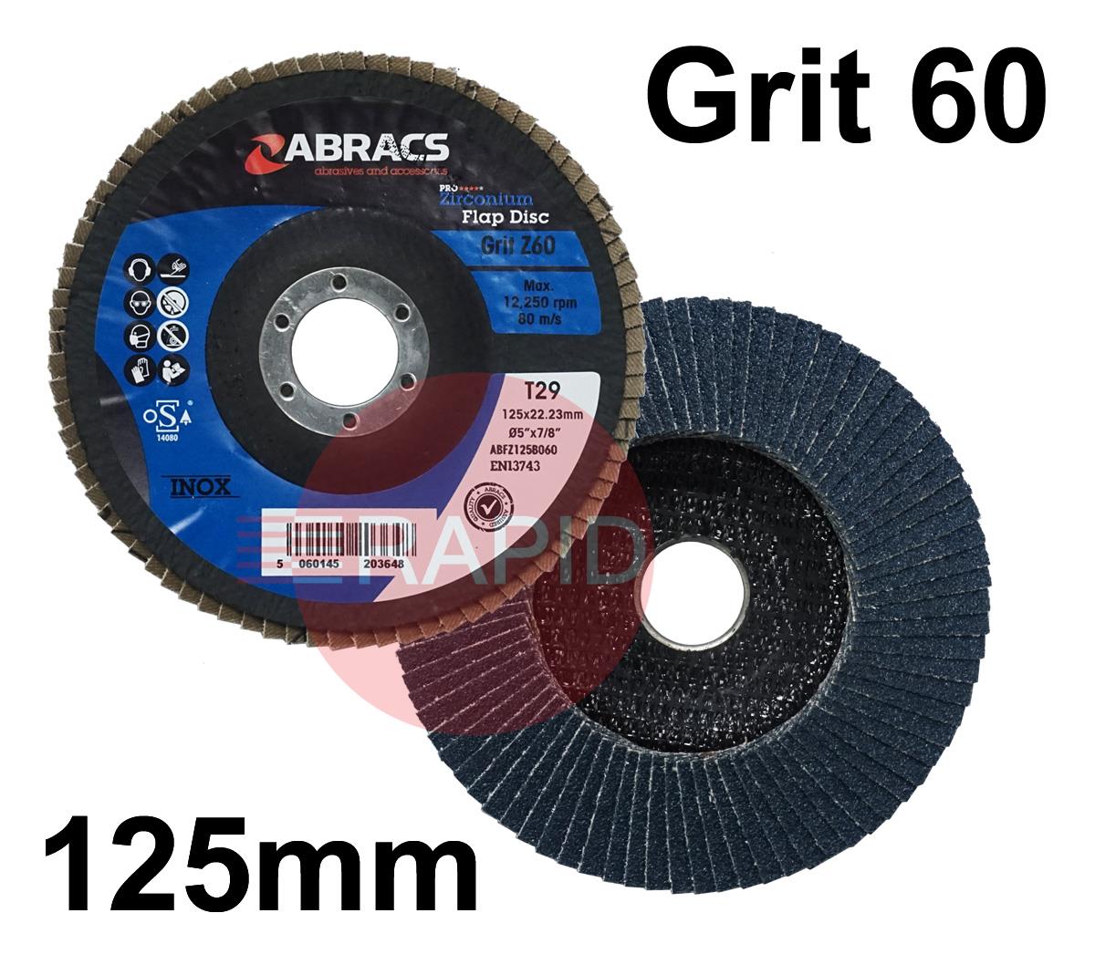 Abracs Pro 125mm (5") Depressed Centre Zirconium Flap Disc. For Steel & Stainless Steel - 60 Grit.