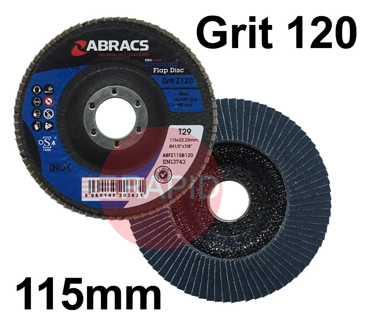 Abracs Pro 115mm (4.5") Depressed Centre Zirconium Flap Disc. For Steel & Stainless Steel - 120 Grit.