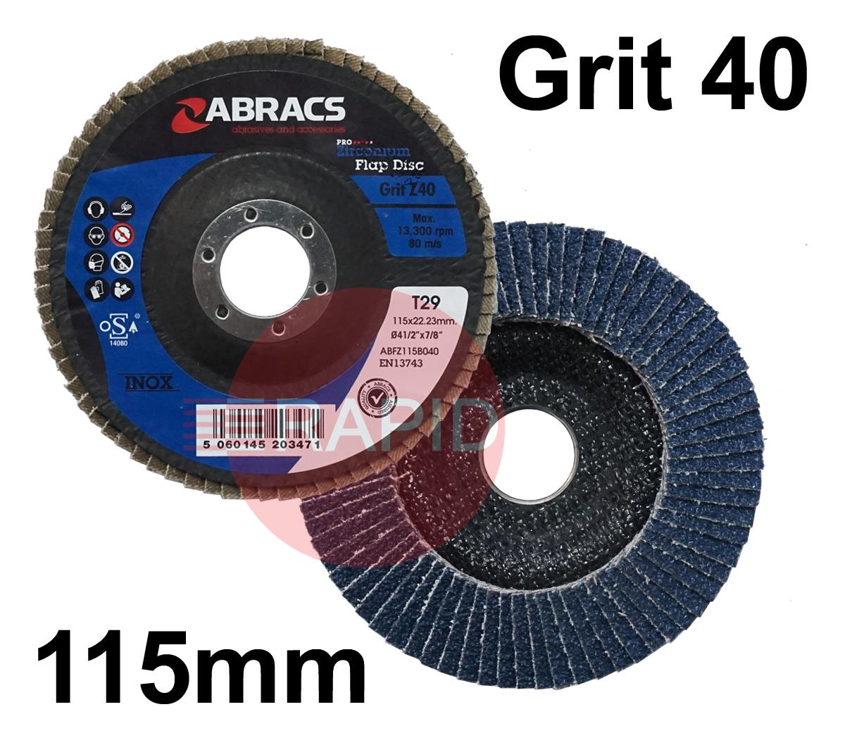 Abracs Pro 115mm (4.5") Depressed Centre Zirconium Flap Disc. For Steel & Stainless Steel - 40 Grit.