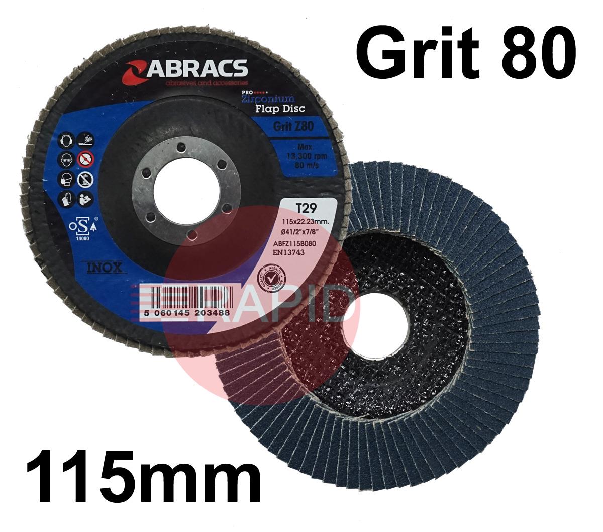 Abracs Pro 115mm (4.5") Depressed Centre Zirconium Flap Disc. For Steel & Stainless Steel - 80 Grit.