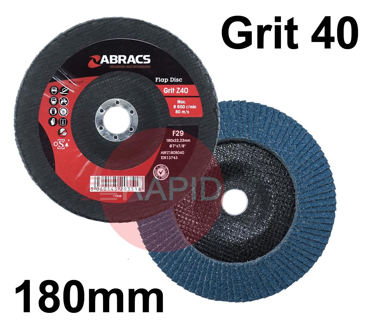 Abracs Pro 180mm (7") Depressed Centre Zirconium Flap Disc. For Steel & Stainless Steel - 40 Grit.