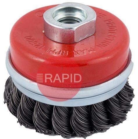 Cup brushes - suitable for angle grinders and other specialist machinery. Twist knot brushes are sturdy and aggressive whilst offering the operator maximum comfort and safety. They are ideal for the removal of slag, rust, paint and residues of any kind. Available in mild steel and stainless steel.