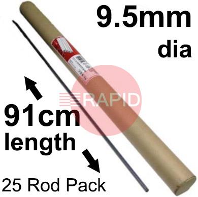 Specially designed uncoated cutting rod, patented single-piece construction maintains the balance necessary to sustain the exothermic reaction. Cutting rods can sustain the burn with and without constant electrical power once ignited. Specification Cutting Rod Base Material: Mild Steel Cutting Rod Specification: 9.5mm diameter x 91.4cm long (3/8” x 36”) Rod Burntime: 60 – 70 seconds