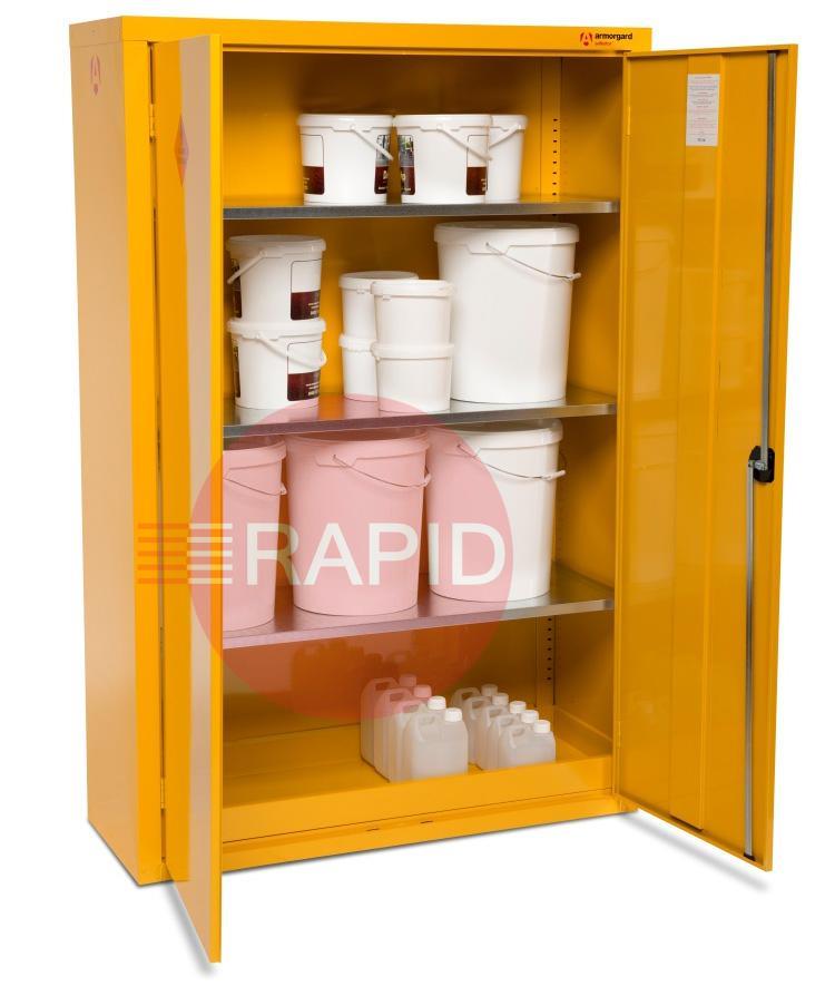 Safestor Hazardous Floor Cupboard 1200mm x 465mm x 1800mm, designed to be used internally for the safe storage of flammables and chemicals, such as paint and other hazardous substances as defined by COSHH guidelines.