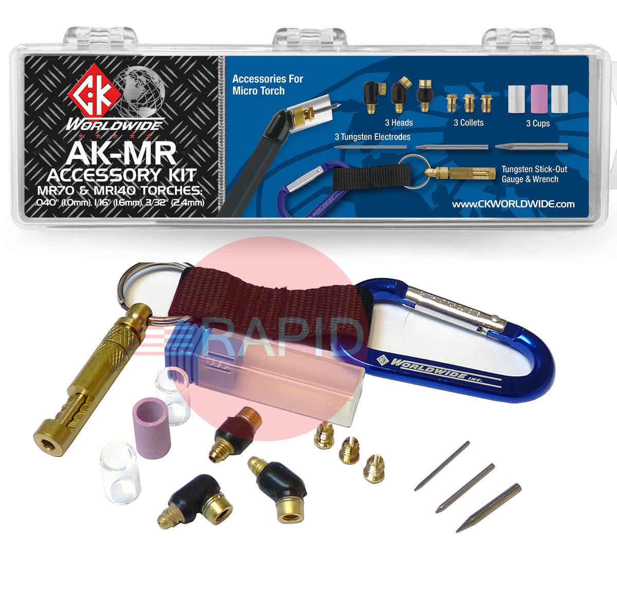 With a 70 amp rating and a ballpoint pen size, the new MR70 Micro Torch will handle your hard-to-access welding applications.Clear Pyrex nozzles and a low-profile torch body make the MR70 perfect for the operator to see the weld puddle ensuring a high-quality weld. 45°, 90° and 180° heads are easily interchangeable onto the body and are included in the torch package. The different angled heads all use the same clear Pyrex nozzle eliminating the need for angled nozzles.The tungsten electrode is easily adjusted with the Tungsten Stick-Out Gauge and Wrench, also included in the torch package. Simply set the gauge to the desired length and tighten the collet with the wrench securing the tungsten electrode. Super Flex® hoses complete the package minimising the weight and pull of the cable assembly when performing intricate TIG welding applications.