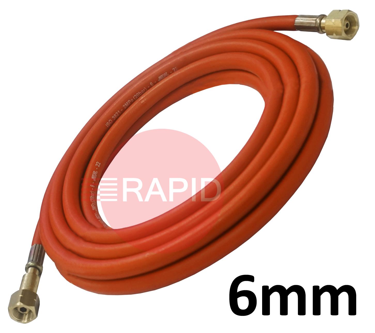 Fitted Propane Hose. 6mm Bore. G3/8" Check Valve & G3/8" Regulator Connection