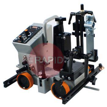 Magnetic carriage with control for continuous travel, and with forward/stop/reverse switch, wire feed start on/off switch, travel speed potentiometer, auto wire feed start with delay carriage start, travel speed display in LED window, wire feed connector with 15ft (4572mm) control cable.