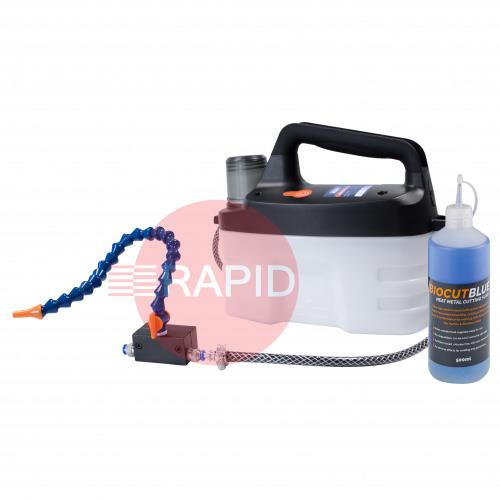 4 litre, rechargeable, cordless coolant pump with adjustable dispensing arm and magnetic foot.