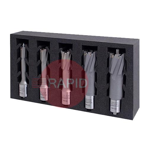 HMT CarbideMax 55 TCT Broach Cutter 5 Piece Set (12, 14, 18, 22, 26mm) & 2 Pilot Pins