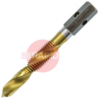 VersaDrive Combi Drill Taps are a time-saving solution for pilot drilling & tapping in one easy operation. The Titanium coating provides wear resistance and faster cutting performance. VersaDrive Sheet Metal Impacta-DrillTaps have a patented non-slip Hex shank suitable for use in any standard 1/2” drill chuck for cordless or pistol drills or used with a VersaDrive Rapid Lock adaptor for use in a wide range of power tools such as Magnetic Drills. Recommended for use with Impact Drivers for high drilling and tapping productivity.
