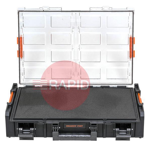 The MKC-EMID-200 variant of the STAKIT Mid Case is completely self-customisable. It comes with a removable foam insert that fills the case and can be cut to hold power tools, batteries, chargers, tooling and anything else you will need on-site.