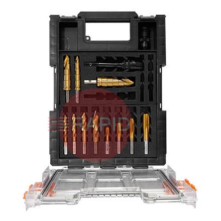 Compact but fully stocked, the ETOP2 Impact Kit provides all the most needed sizes of drilling, tapping, and enlarging tools for hole creation and modification in the field.