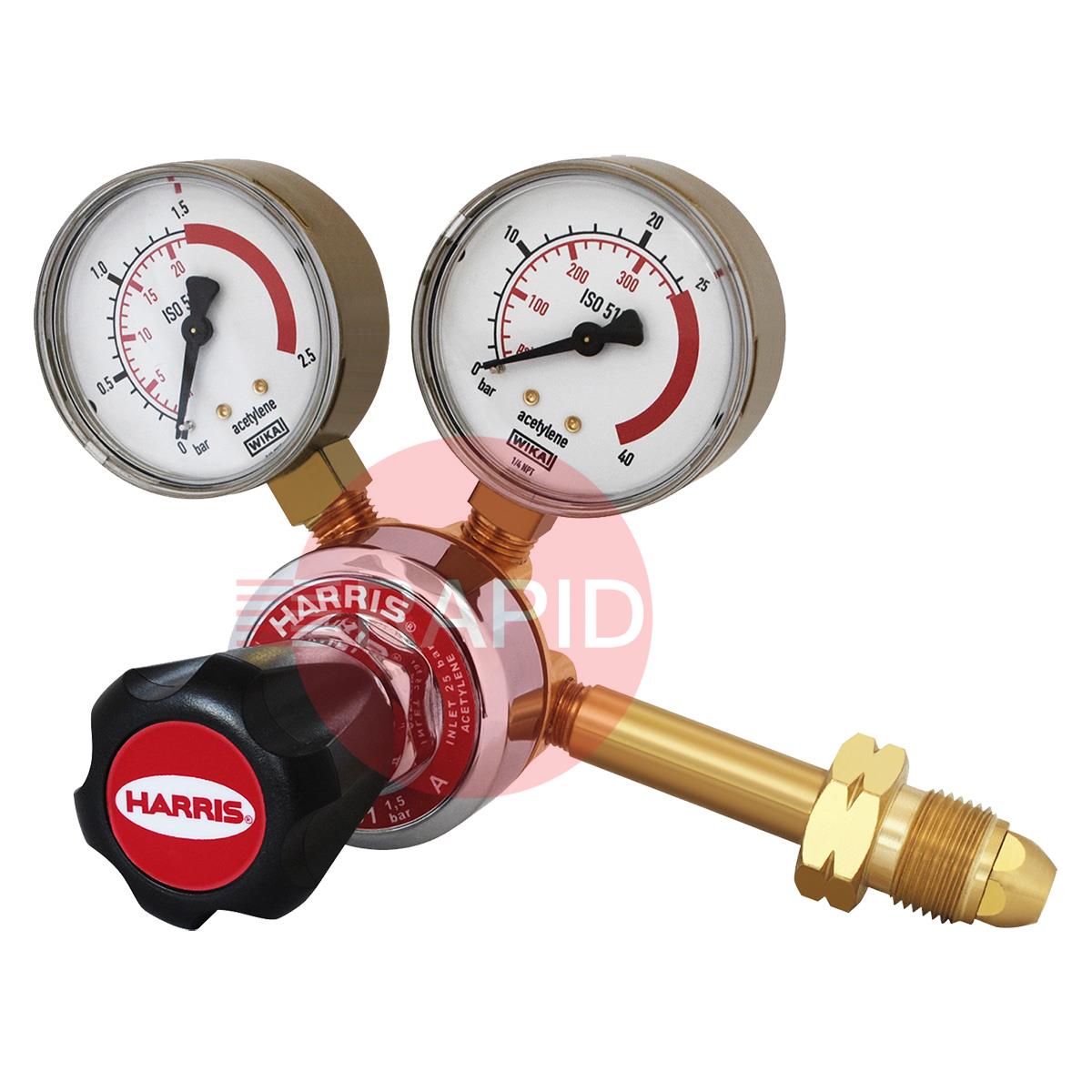 Harris 801 Acetylene Single Stage Two Gauge Regulator, Side Entry, 1.5 Bar, 5/8" BSP LH Cylinder Connection, 3/8" BSP Outlet, UK Fitting Only