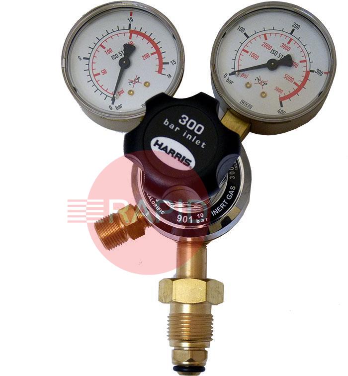 Harris 901 Inert Gas Regulator 10 Bar Single Stage Two Gauge Regulator 10.0 Bar, 5/8" BSP RH Cylinder Connection, 3/8" Outlet, UK Fitting Only