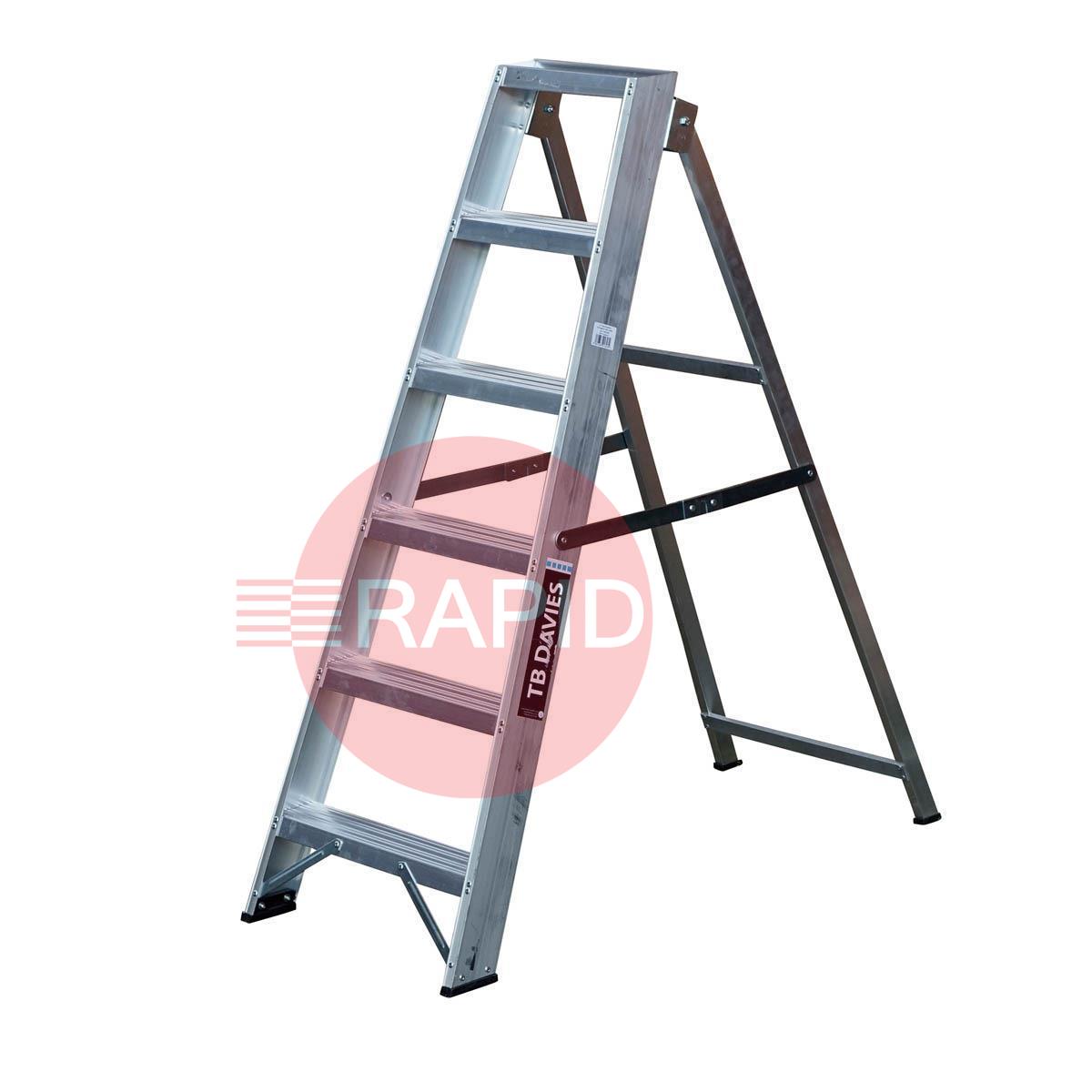 Comfortable 80mm treads. Heavy duty all aluminium construction. Hinged metal locking stays provide optimal stability. Box section back legs with heavy-duty bracing. Slip resistant feet provide a firm footing.