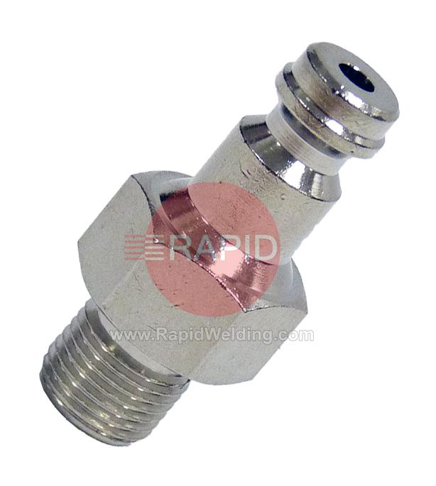 1/8" Thread to Male Snap Connector for Gas Connection.