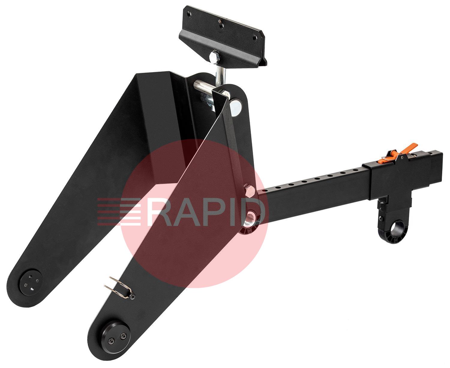 A wire feeder hanger to make the workspace more versatile. Multiple different angles for the wire feeder. Easy and ergonomic wire spool replacement.