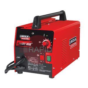 Lincoln Electric’s Handy MIG power source comes included with a 2.5m input cable with 16A plug, a fixed 2.5m MIG gun, a fixed return 2.5m welding cable, 0.6-0.9 drive roll, 0.45Kg Innershield 0.9mm, 0.5Kg solid wire 0.6mm and a kit of welding accessories.