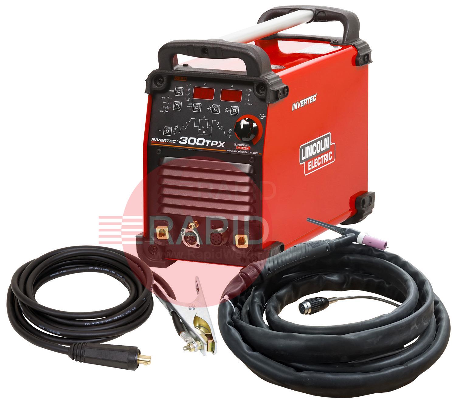 This air-cooled ready-to-weld package includes the Lincoln Invertec 300TPX TIG Welder Power Source, Lincoln WTT2 26 Air-Cooled 4m TIG Torch, 5m Workpiece Cable and Clamp, Lincoln 0-15 LPM Argon Regulator and Lincoln Hose Tail & Nut Set.