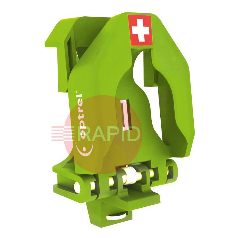 Suitable for all Optrel welding helmets and especially useful for air-fed units, this allows you to safely secure your welding helmet without disconnecting air hoses while you are not welding. Helmet release is quick and easy using just one hand.
