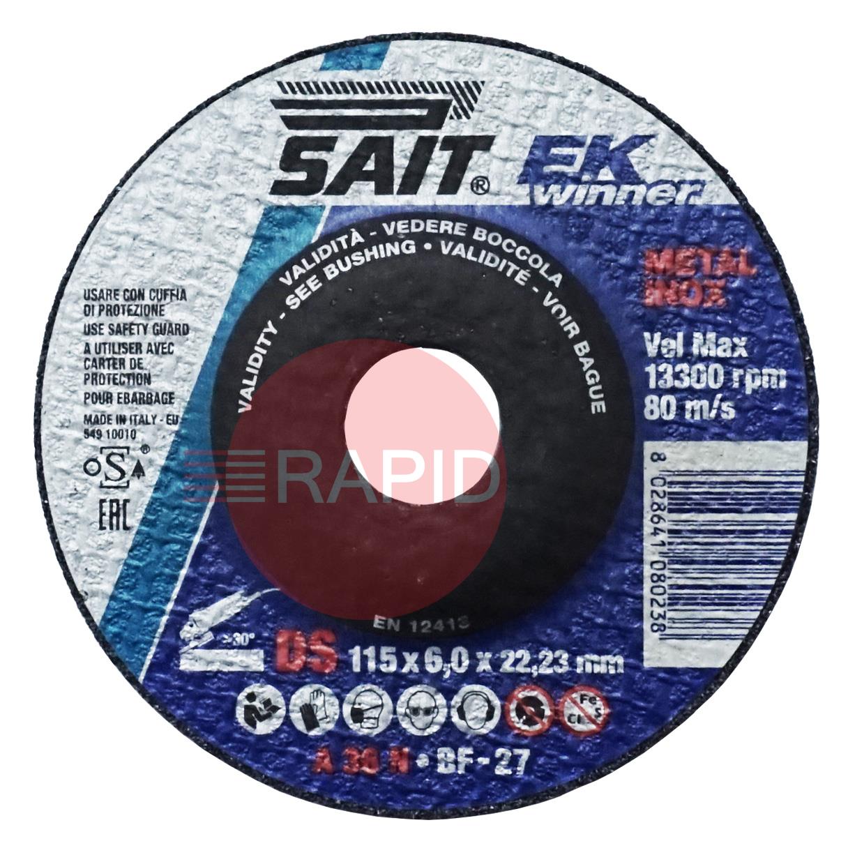 SAIT EK Winner-DS 115mm (4.5") Grinding Disc 6mm Thick - Grade DS A 36 N