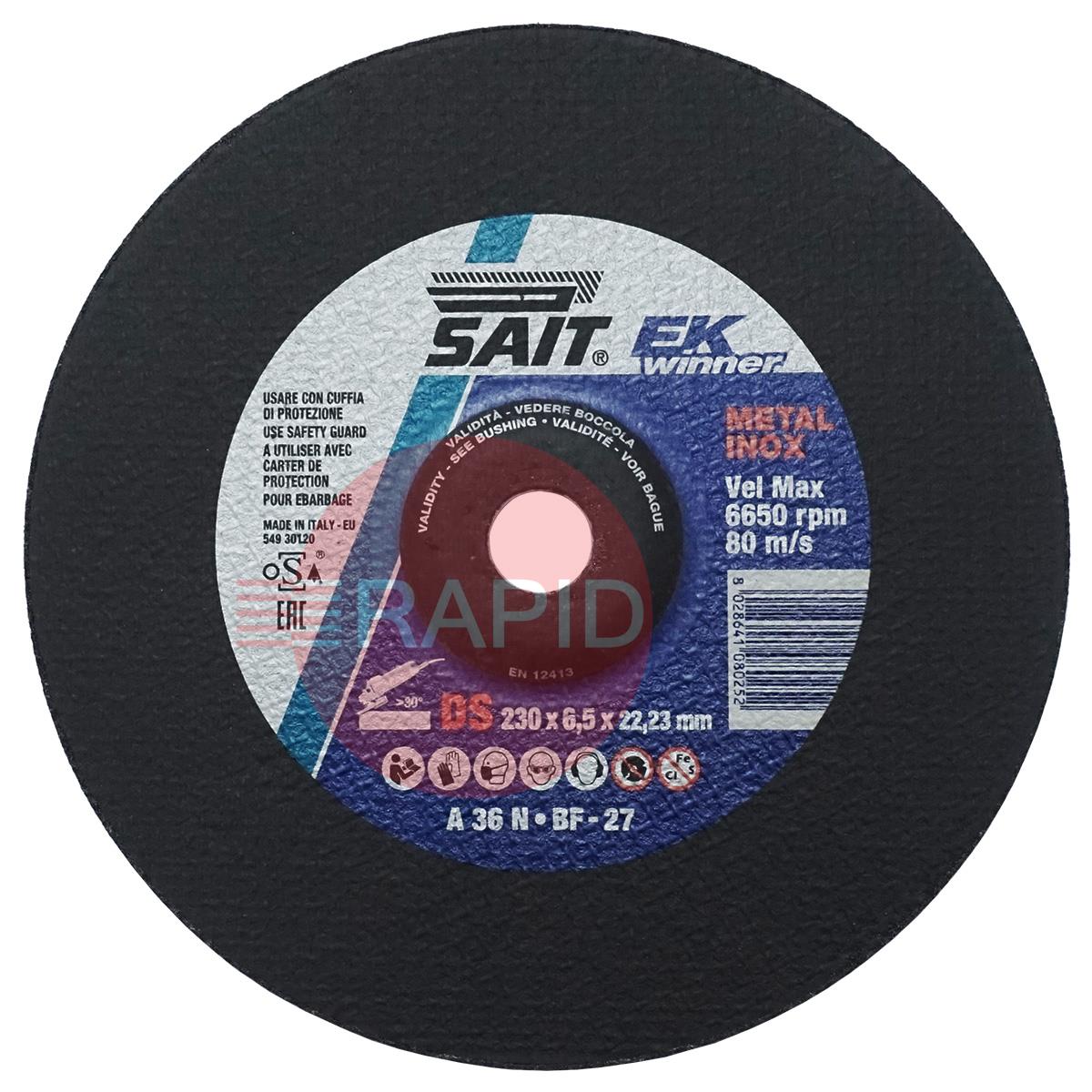 SAIT EK Winner-DS 230mm (9") Grinding Disc 6.5mm Thick - Grade DS A 36 N