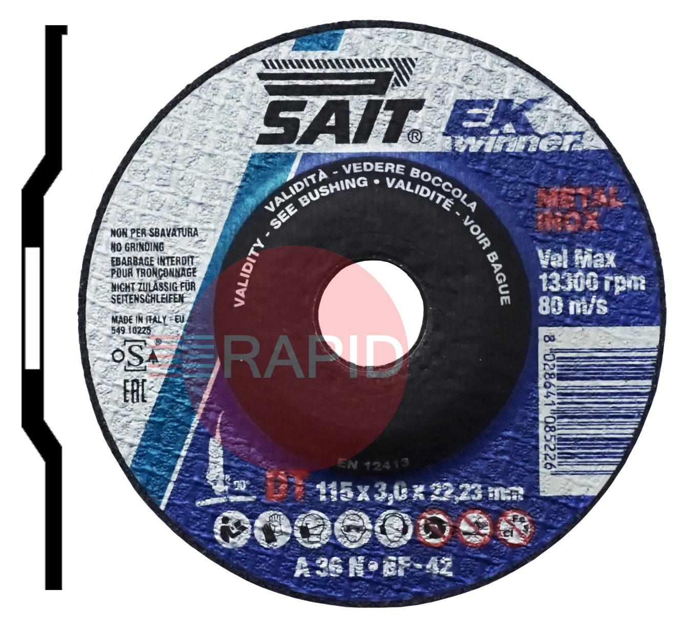 SAIT EK Winner-DT 115mm (4.5") Depressed Centre Cutting Disc 3mm Thick - Grade DT A 36 N