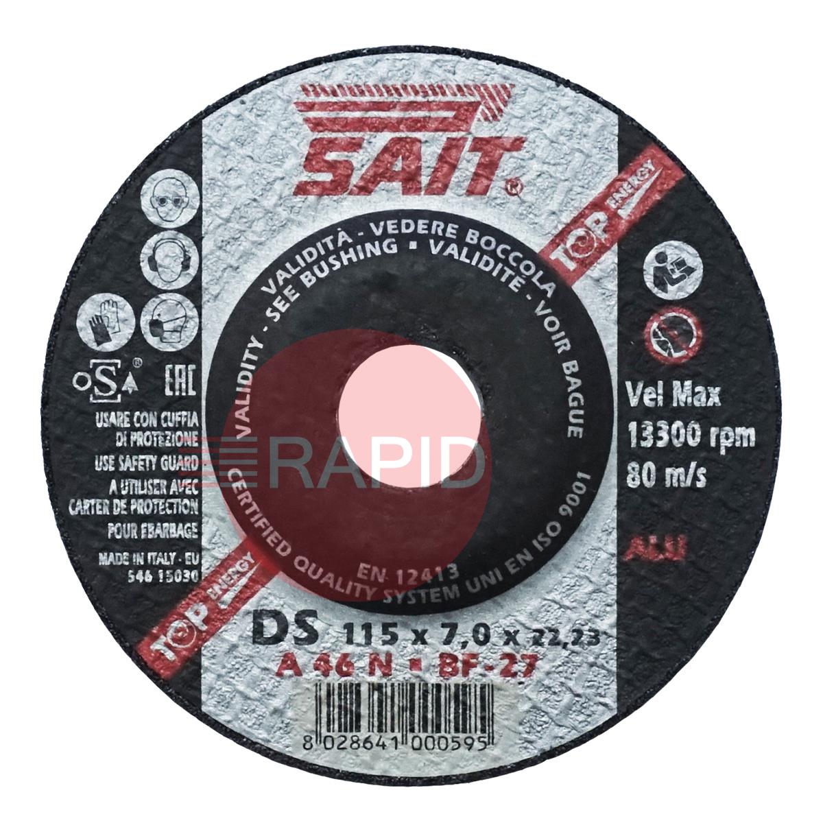 SAIT Premium-DS 115mm (4.5") Grinding Disc 7mm Thick - Grade DS A 46 N. For Aluminium.