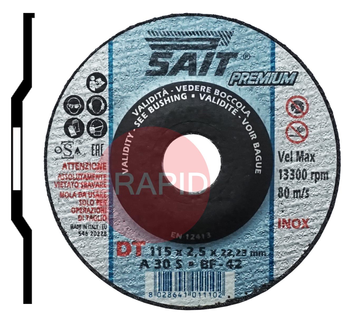 SAIT Premium-DT 115mm (4.5") Depressed Centre Cutting Disc 2.5mm Thick - Grade DT A 30 S